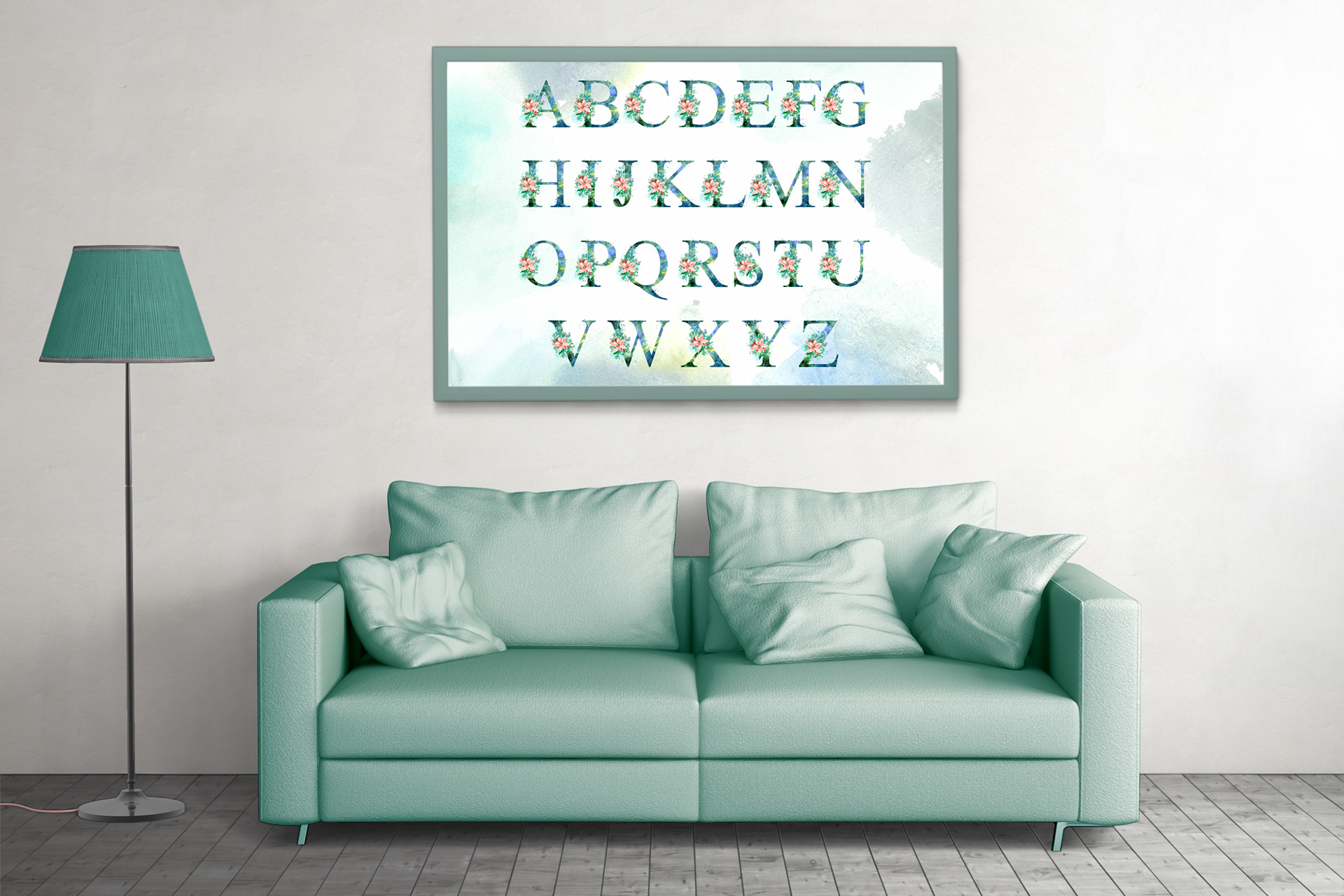 Watercolor Alphabet on watercolor background x JPG and PNG (with transparent background)